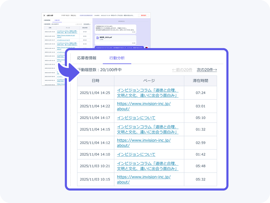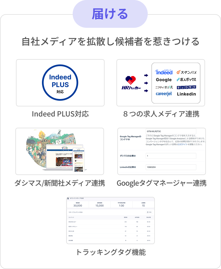 トラッキングタグ機能を活用し、御社が運用する様々なメディアを横断して、候補者の行動データを収集し、より見られるものへ改善しましょう。