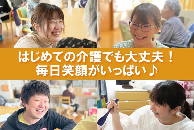 | 応募資格 | 未経験の方も歓迎 資格所有者、経験者は優遇します <こんな方に向いています> ・「ありがとう」が仕事の喜びになる方 ・介護のプロを目指したい方 ・家族想いな方 ・おじいちゃんおばあちゃんとの思い出がいっぱいある方 ・お話しするのが大好きな方 |