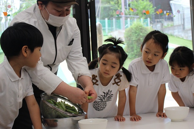 | 調理スタッフも「先生」です | 保育園で働く職員は全員が「保育者」です。 調理スタッフも子どもたちからは「先生」と呼ばれます。 調理風景も子どもたちは見ていますので、カッコいいところを見せてください。 |
