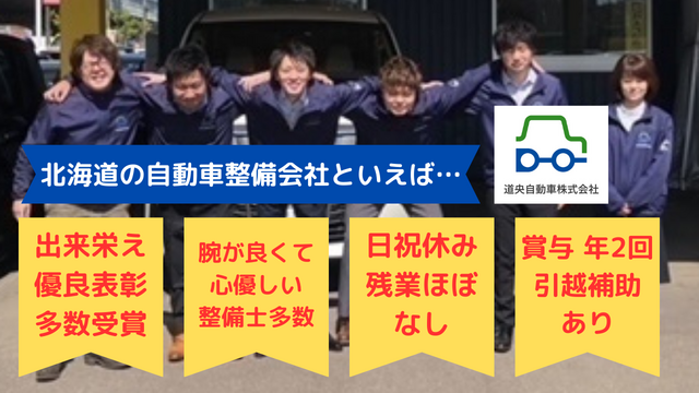 | 道央自動車で働く | <働きやすい環境が自慢!> 良い意味で上下関係が厳しくなく、気さくで優しい人ばかりなので、新しく入社する人もスグに馴染めると思います。 仕事面では、頼れる先輩として、あなたの成長をしっかりサポートしてくれます! <仕事もプライベートも満喫!> 「この日は大切なイベントがあるので休みたい」「家族の学校行事・幼稚園の発表会などで休みたい」など、あなたの予定も考慮します! 休み希望は前月に申請すればOKです! |