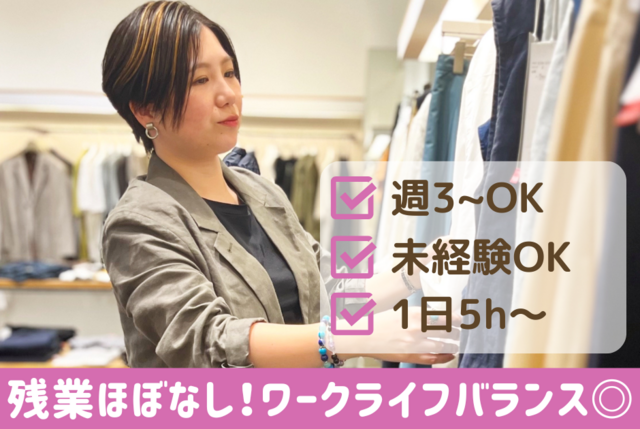 | 応募資格 | ・学歴、性別不問 ・主婦(夫)活躍中 ・大学、専門、短大生可 ・アパレル販売経験者歓迎 ・外国人の方もOK (日本語検定N2以上の方) |