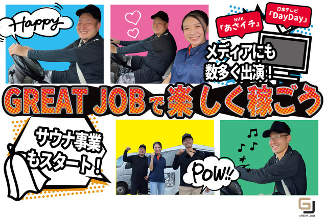| 会社概要 | ・社名:株式会社GREAT JOB ・TEL:03-5859-5606 ・資本金:500万円 ・代表取締役:野村亮太 ・所在地:〒104-0033 東京都中央区新川1-26-9橋口ビル2F ・事業内容 └軽貨物事業 └広告代理業 └WEB制作事業 └サウナ事業 |