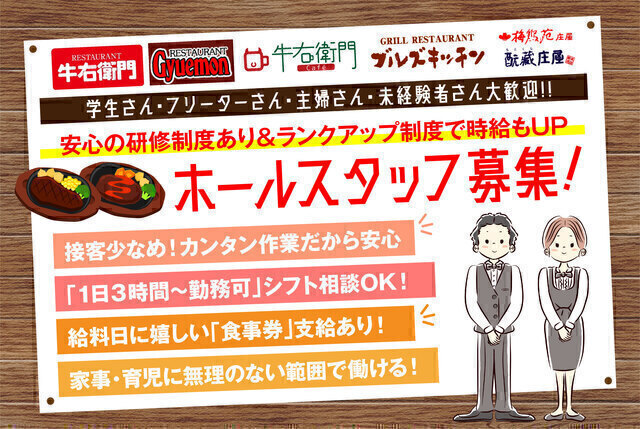 ホールスタッフ/牛右衛門時津店◆シフト自由◆