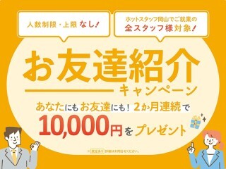 《お気軽にお問い合わせください。TEL 0120-896-200》 | ●どのお仕事に応募しようか迷ってる方や、 とりあえず登録だけしたい方にオススメ [2分で完了♪かんたんWEB登録 ](https://www.hotstaff.co.jp/hotkensaku/sp/web_registration?branch_pref=%E5%BA%83%E5%B3%B6%E7%9C%8C&branch_id=0948) ※24時間365日エントリーOK ※お時間ある方は、ヒアリングシートのご入力の ご協力をお願い致します。 ☆======================☆ どのお仕事に応募していいか分からない・・・ そんな方はコチラ↓↓ [かんたん仮登録でご相談下さい(^^)/ ](https://www.hotstaff.co.jp/hotkensaku/sp/web_registration?branch_pref=%E5%BA%83%E5%B3%B6%E7%9C%8C&branch_id=0948) ▲▲ まずは登録だけもOK♪ ▲▲ ☆======================☆ 新しいホットスタッフの前渡しサービス始まります!! 最短当日受取可能! 〇セブン銀行<ATM受取>での受取となります。 〇申請のタイミングによっては、翌日扱いとなる場合があります。 詳細は、弊社担当者までご確認ください。 ※土曜日・日曜日・祝日での入金はできかねますので、翌営業日の入金となります。 ※従来の前渡しシステムも利用可能です。 ーーーーーーーーーーーーーーーーーーーーーーーーーーーーーーーーーーーーーーーー 7/7(月)8/8(金)9/12(金) 13:00~16:00 \\ホットスタッフ岡山より登録会のお知らせ// ▼▼▼▼▼▼お仕事相談会開催!▼▼▼▼▼▼ 「営業担当と手っ取り早くお話ししたい!」 「一気にいろんなお仕事を提案してほしい!」 という方はぜひご参加ください! 私服参加OK! 飛び込み参加OK! お子様と一緒にご来場OK! ☆ 岡山ふれあいセンター登録会 ☆ 日時:7/7(月)8/8(金)9/12(金) 時間:13時~16時 場所: 岡山ふれあいセンター・第5会議室 〒702-8002 岡山県岡山市中区桑野715−2 |
