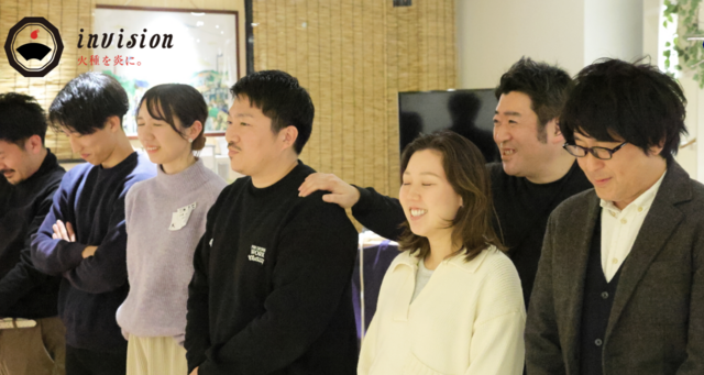 | 会社概要 | 会社名 :インビジョン株式会社 設立 :2008年7月 代表者 :吉田 誠吾 従業員数:42名 (正社員38名/うち正社員時短5名、業務委託4名) 平均年齢:34.6歳(20代15名、30代17名、40代10名) 男女比率:男性20名、女性22名 事業内容:HRテック、採用支援、ブランディング 事業所:東京本社(中目黒)、福岡事業所(天神) 会社HP :https://www.invision-inc.jp/ |
