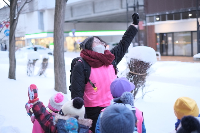 | こどもカンパニーの保育を一部ご紹介! | 【プロジェクト型活動(主に3〜5歳児)】 子どもたちの「知りたい、やってみたい」という声をもとに、学びや遊びにつなげて深めていく集団での活動です。 子ども同士が対話を大切にしながら、テーマに沿って協同し、みんなで考えたり調べたり、ものづくりなどの取り組みを通して、学んでいきます。 テーマを掘り下げる中で自然と文字や図形、数量、生物、歴史など、様々な分野への探求が枝葉のように伸びていくので、子どもの声に耳を傾けながら必要な環境を用意していくことが保育者の大事な役割になります。 【歩育】 歩いて育てる「歩育」。年齢×km歩ける子を目指しています。 一歩園の外に出ると、そこは沢山の本物で溢れています。誰かに連れて行かれるのではなく自分の足で地域を歩きながら、子ども達は五感で本物を感じとっていきます。自然に触れたり地域の人と交流したり街探検をしたり。 保育者も子どもと同じ目線で「?」を探しながら、時には楽しい仕掛けをしていきます。春探しビンゴや街の標識探し、お店屋さんごっこのための見学など、 どれもが保育者や子どもの「やってみたい」から生まれています。 【わらべうた(主に0歳児)】 乳児クラスでは歌いかけや触れ合い遊びを通して愛着関係を結んでいます。 言葉を獲得する前から意思表示ができるわらべうたは、 「自分の気持ちを分かってもらえた」「自分は大切にされている」と感じる大事な原体験となり、自己肯定感を育む土台となります。 赤ちゃんが心地よい時は大人も心地が良い時。目を合わせてわらべうた遊びを行なっている時間は、お互いに幸せを感じるひとときです。 日常的に個の関わりを持つことで、子ども理解がよりしやすくなります。 |