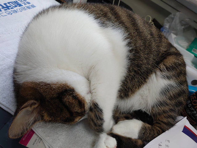 | 当社について | 1981年設立、今年で39年目の当社。 大手ハウスメーカーの一次下請け(クレーンと操縦のリース業)で業績は好調!現場での機材などの上げ下げを請け負っています。 重機オペレーター7名(うち1名は女性)、大工4名、事務1名の職場です。(20代が1名・30代が5名・40代と50代が1名ずつ) 分からない事は聞けばすぐに教えてくれる面倒見が良いスタッフばかり! そしてもう1名(?)忘れてはならない存在が… 看板猫の『ちびちゃん』。前の事務所で住み着いていた3兄弟のうちの1匹なのですが、めちゃくちゃ懐いてしまったので連れてきちゃいました! |