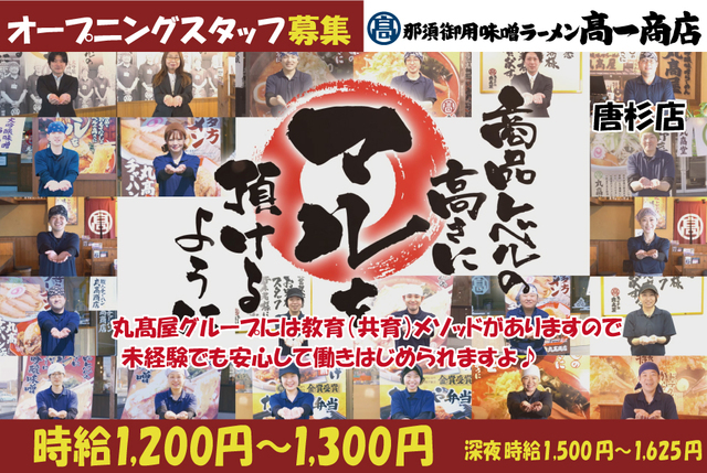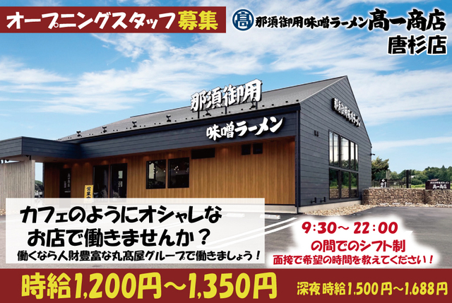 | ◇◆◇丸髙屋の新ブランド◇◆◇ | 那須塩原市初! レーンでラーメンを提供します! カフェのようなおしゃれなラーメン屋の新ブランドで一緒に働きませんか? オープニングスタッフだからみんな同じスタートで安心して働けます! オープン前に研修もあります!! |
