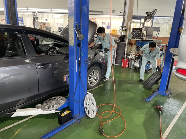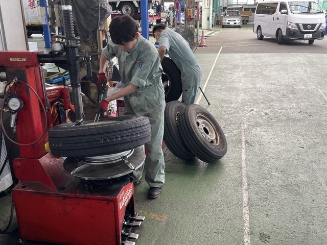 | 入社後の流れ | 未経験者の方も安心してください! 実務を通じて学べるOJT制度で、 ステップごとに丁寧に育成しています。 STEP1:車や工具、機材の基礎知識を習得 STEP2:タイヤ・オイル交換など簡単な業務をスタート STEP3:企業でよく使われる車両の点検・車検にチャレンジ STEP4:さらに幅広い車両の整備を行いながら習熟していきます! STEP5:点検・訪問整備・後輩指導ができる「一人前」へ! 点検作業中は、ベテラン整備士が隣でサポート。 わからないことはその場で質問OK! その都度教わりながら、 技術やコツを自然と吸収していけます。 「見て覚える」ではなく、 一緒にやりながら覚えるスタイルです◎ |
