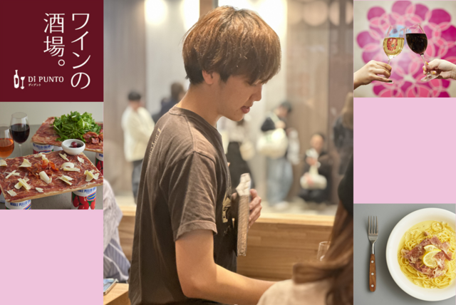 | ワイン酒場DiPUNTO(ディプント)って ?? | 「おいしいものを食べたい」「おいしいワインをもっと楽しみたい!」 ワインの酒場。DI PUNTO(ディプント)は会話を楽しんでいただくための場所です。 といっても、ワインの専門店ではないため、お酒が飲めない方には、ワインのような色をした極上のぶどうジュースもご用意しおもてなししています! お料理には、生ハムや、こだわりのチーズや石窯オーブンで焼き上げる自慢のピザなどを多数取り揃えています。 ※席数:56席(テーブル席46席、カウンター席10席) お仕事帰りの方、お買い物帰りの方、ご友人とのお食事などさまざまな方がご来店されます。 「ワインでおしゃべり」する時間をお客様により楽しんでいただくために、是非あなたのお力を貸して頂きたいです! |