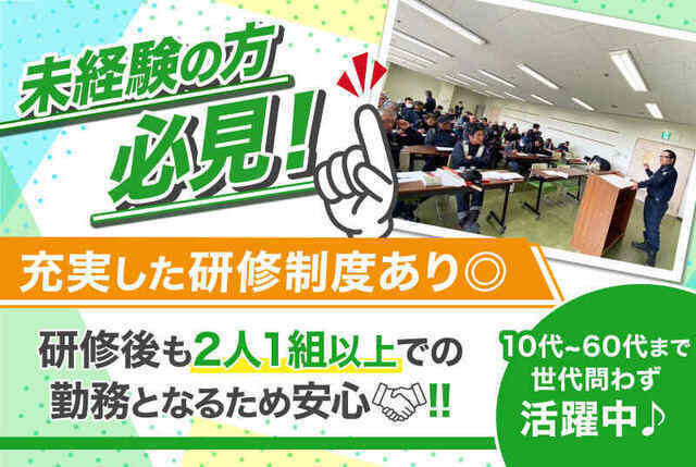| 応募資格 | ◆未経験ok ◆18歳以上(警備業法) ◆シニア応援! ◆20代〜60代活躍中! ◆新しいことにチャレンジしたい方 ◆今の生活を変えたい方 ◆週3日以上勤務できる方 |