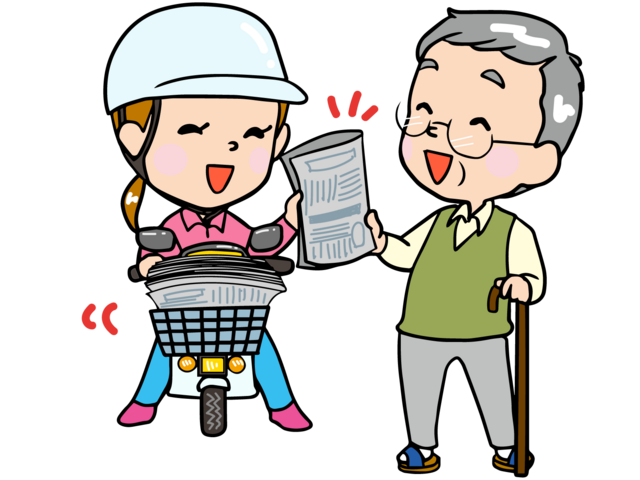 | 朝刊配達スタッフの 仕事の流れ(例) | 【3時に出勤した場合の事例】 3:00 出勤 ↓ 自転車、バイクに新聞を積み込む 3:30 新聞配達業務開始 5:00 配達終了・終わり次第帰宅します ※配達する部数などで時間は前後します。 配達先やルートなど覚えるまでサポートしますので安心ください! |