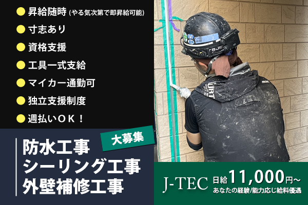 仕事内容 | 関西一円でシーリング工事をメインに活躍しています! 建物を雨漏りから守る為に、建物の目地や隙間を埋める作業をお任せします! 若くてやさしい先輩方がしっかり指導します!まずはアシスタント業務からスタート! |