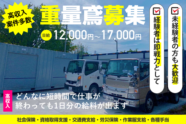 重量鳶スタッフ | どんなに短時間で仕事が終わっても1日分の給料が出ます! 仕事にやりがいを感じたい方・チームで取り組む仕事に興味がある方 まずはお気軽にお問い合わせ下さい! |