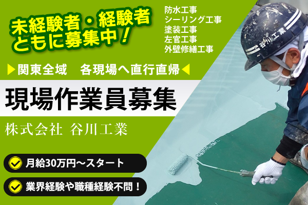 株式会社谷川工業 大田区 現場作業員(防水工事、シーリング工事、塗装工事、左官工事、外壁修繕工事)