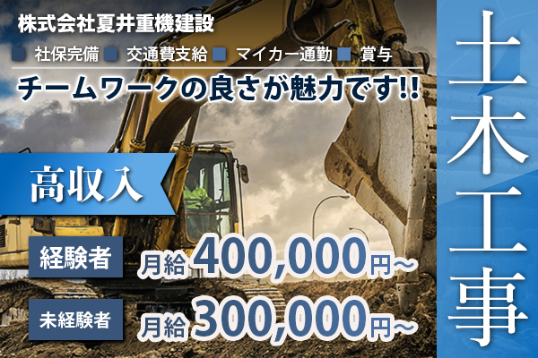 株式会社夏井重機建設 四條畷市 土木工事 未経験者