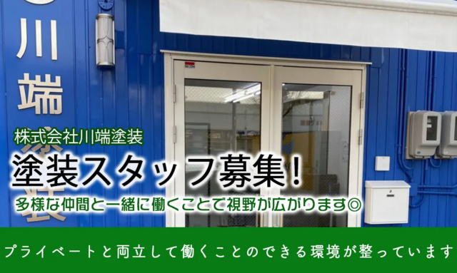 特徴 | 高待遇スタート 未経験者でも日給12,000円スタート 月給250,000円スタートが出来るのが川端塗装です! 実際の社員からは「未経験入社だったので正直給与が心配だったんですけど、面接の際に聞いて安心しましたね♪」 といった声も!「スタートの給与が不安、、」といった方も安心して働ける環境です♪ 残業の少なさ 現場での残業が少ないんです!月平均5時間を超える事はほとんどなく、お昼過ぎに仕事が終わって早上がりになる事もあります!※その際の1日分の給与は丸々支給しています。 ですので「プライベートの時間も充実させたい!」といった方にはうってつけです! 雰囲気の良さ 雰囲気が良いのが川端塗装の特徴です。仕事中は真剣ですけど休憩中や仕事終わりは、 たわいも無い話をして談笑している事が多いです♪オンオフを切り替えててメリハリある働き方をしたい方は 是非一度お話を聞いてみて下さい。 |