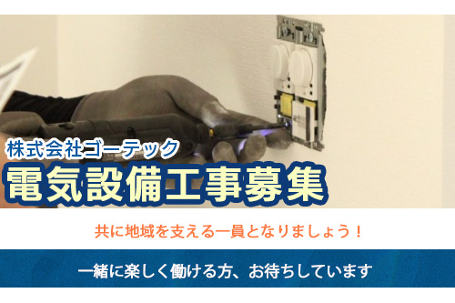 私たちについて | 株式会社ゴーテックは、業績好調につき新たな社員の募集を行っています。 今回は電気工事経験の有無を問わない募集と なっていますので、「電気工事って難しそう、、」や「手に職をつけたい!」といった方も、 やる気さえ持ってきて下さればどんな人でも大歓迎です!弊 社が一丸となってあなたを1人前の電気工事士に育て上げてていきます。 実際に未経験から入社数年で年収600万円の先輩もいます★ その他残業が少ない社風や資格取得支援制度などサポートも万全なので 少しでも興味がある方は是非最後までご覧ください! |