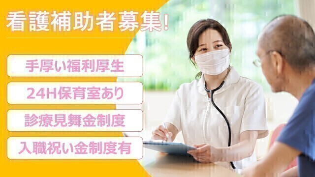 | 仕事内容 | 看護師の指示のもと、看護師業務の補助や患者さんの身の回りのお手伝いなどをしていただきます。 ご入職された方には経験の有無に関わらず、看護師や先輩スタッフが丁寧に指導いたします。 【具体的な業務内容】 ・入院患者さんの日常生活に関わる業務(身体の清潔、トイレ介助、配膳やお茶配り、食事介助等) ・入院患者さんの生活環境に関わる業務(ベッド周辺の整理、病室のゴミ回収、シーツ交換等) ・診療に関わる周辺業務(書類の整理、検査・処置に必要な機械や器具の準備と後片付け等) など |