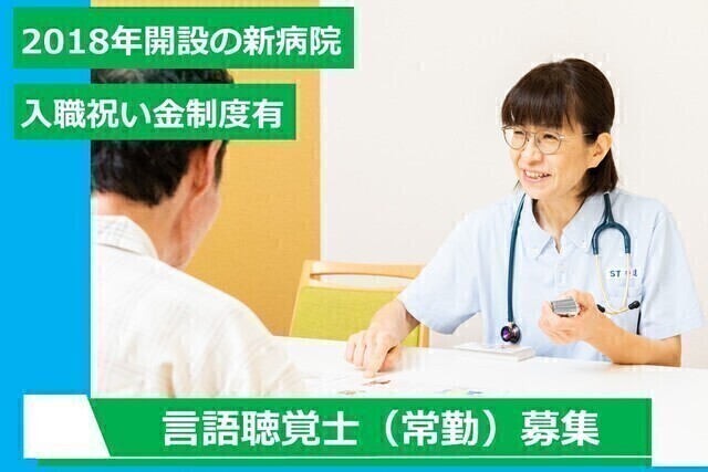 2018年開設したばかりの新しいリハビリテーション病院での言語聴覚士(常勤)/職員寮・保育室完備/入職祝い金制度有/ブランクOK復職サポートあり