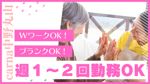 | carna中野丸山の介護チームの一員になってください♪ | carna中野丸山は、医療法人武蔵野会が運営する医療、グループホームです。 【愛し愛される】理念に掲げ、地域の方々を愛し、愛される運営を目標に医療、介護事業を運営しております。 利用者の皆さまと向き合い、認め合い、寄り添い、そして地域とのつながりを重視し、住み慣れた地域で安心して生活いただけるように、私達と一緒に沢山の人に貢献できるお仕事しませんか? <幅広い年代が活躍中!> 20代の若手〜30代、40代の主婦(夫)さん、 50代、60代の中高年、シニアスタッフ、 新卒、第二新、卒看護学生などなど 幅広い年代のスタッフが活躍しています! |