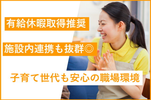 ICT化で働きやすさ抜群!残業ほぼ無し、有給休暇取得推奨。無資格者も大歓迎!子育て世代も安心の環境で、施設内連携もバッチリ!