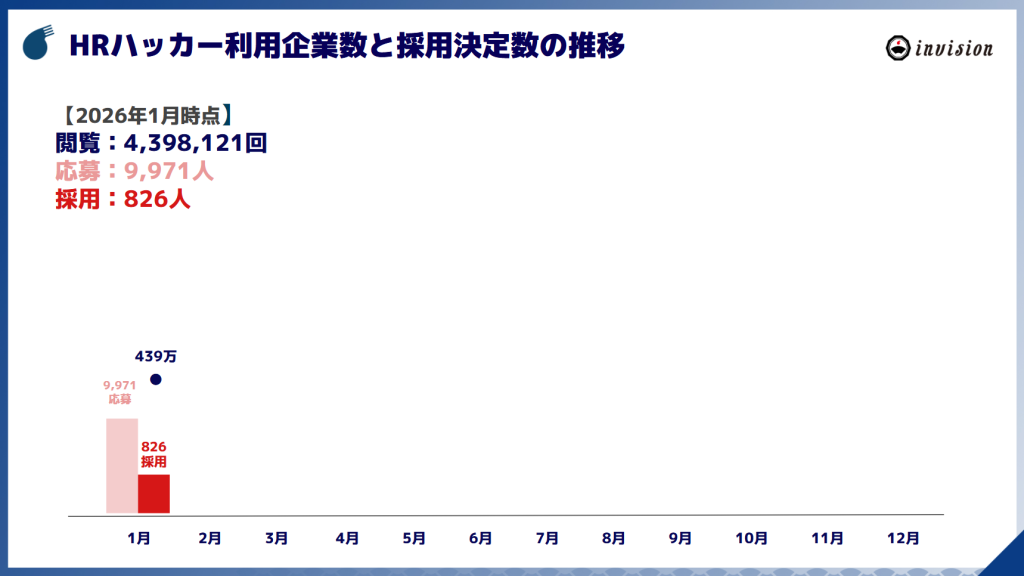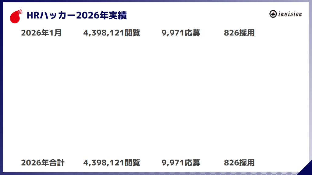 2026年1月度にHRハッカーの閲覧数・応募数・採用数は以下のとおりです。